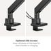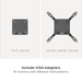 Pour plus de flexibilité, des adaptateurs VESA sont fournis, rendant le bras compatible avec divers motifs VESA. Cela le rend notamment adapté aux grands écrans comme le Samsung Odyssey Ark 55”. De plus, la plaque VESA à dégagement rapide pratique et le montage par le dessus du bureau permettent une installation rapide et facile.